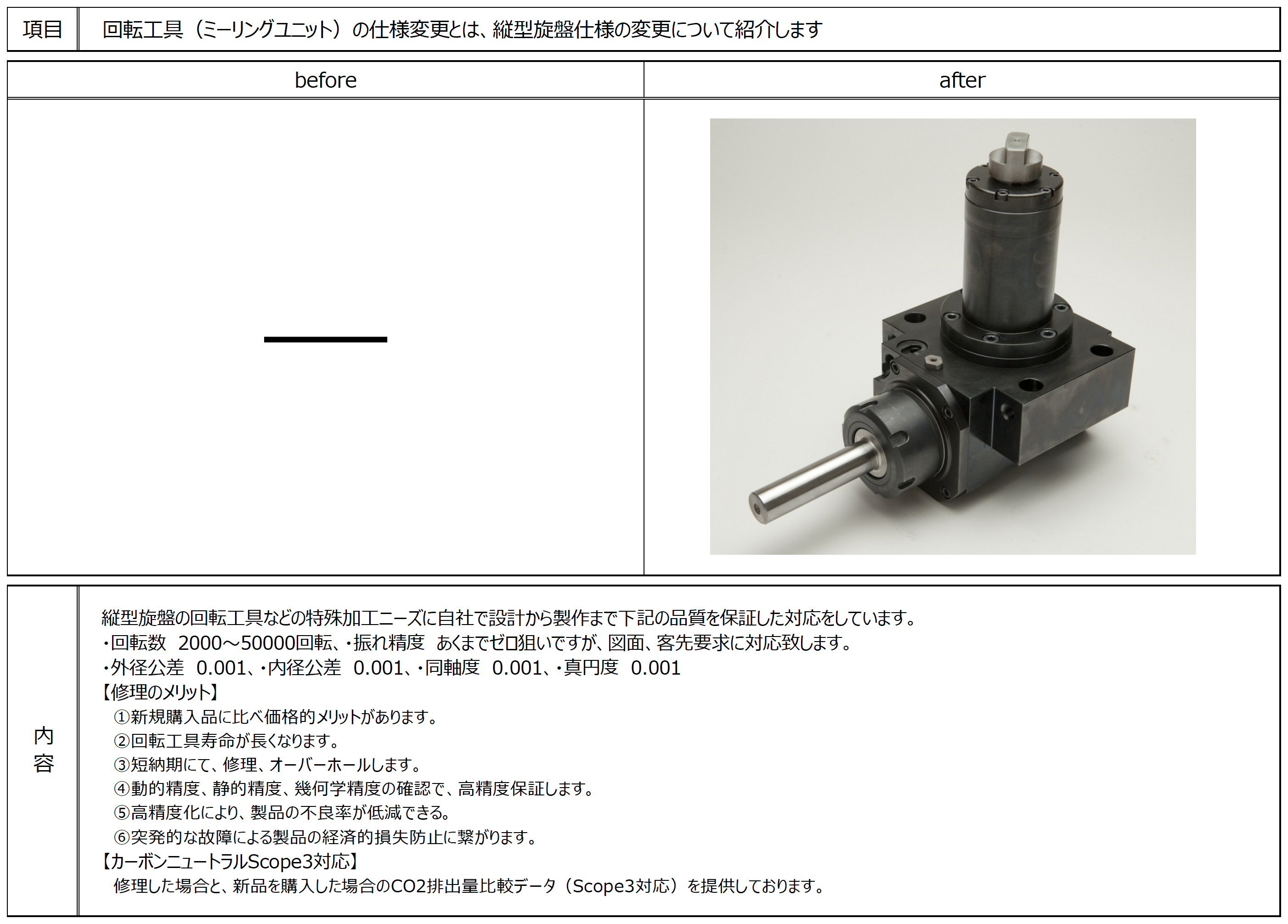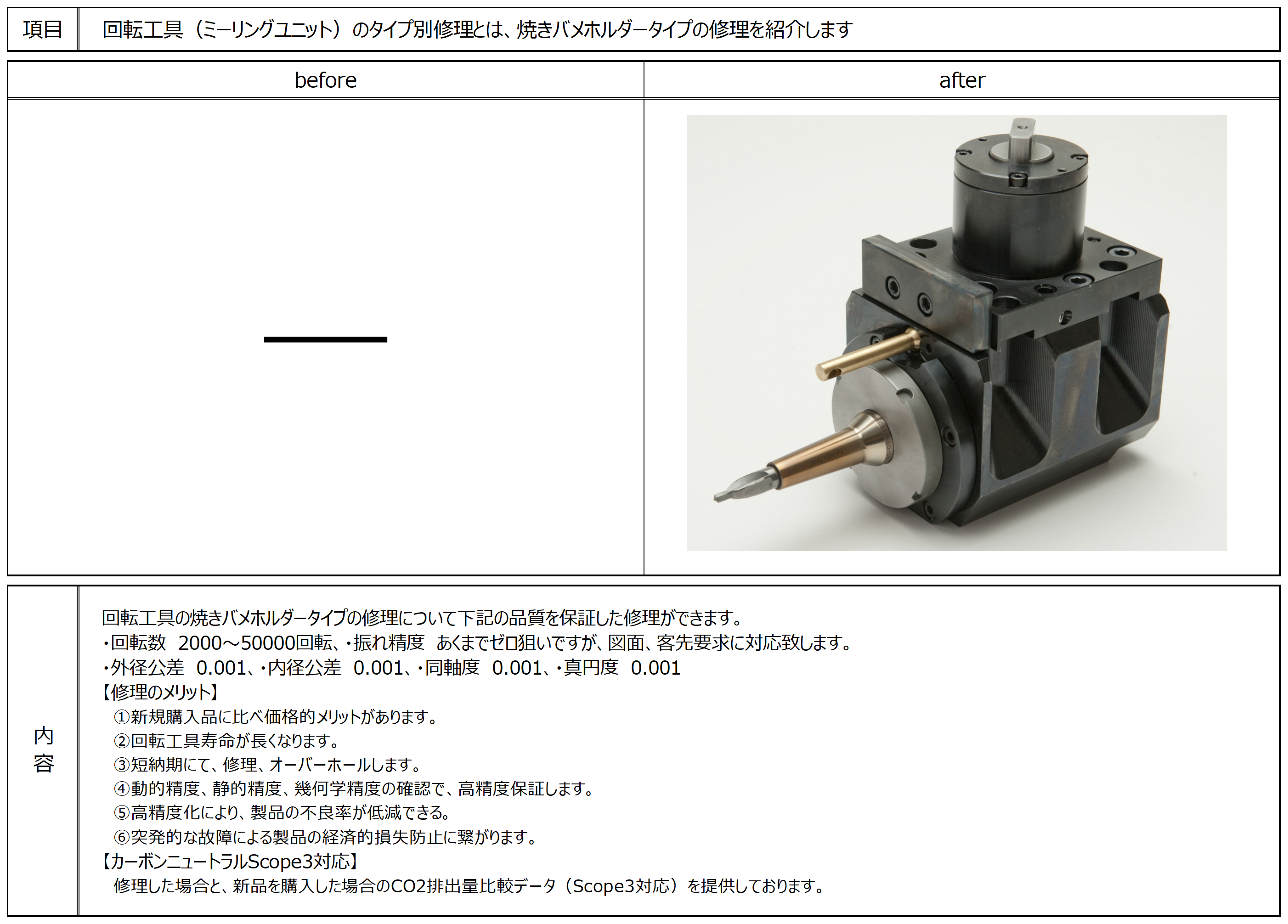 各メーカーの回転工具(ミーリングユニット)の各種修理